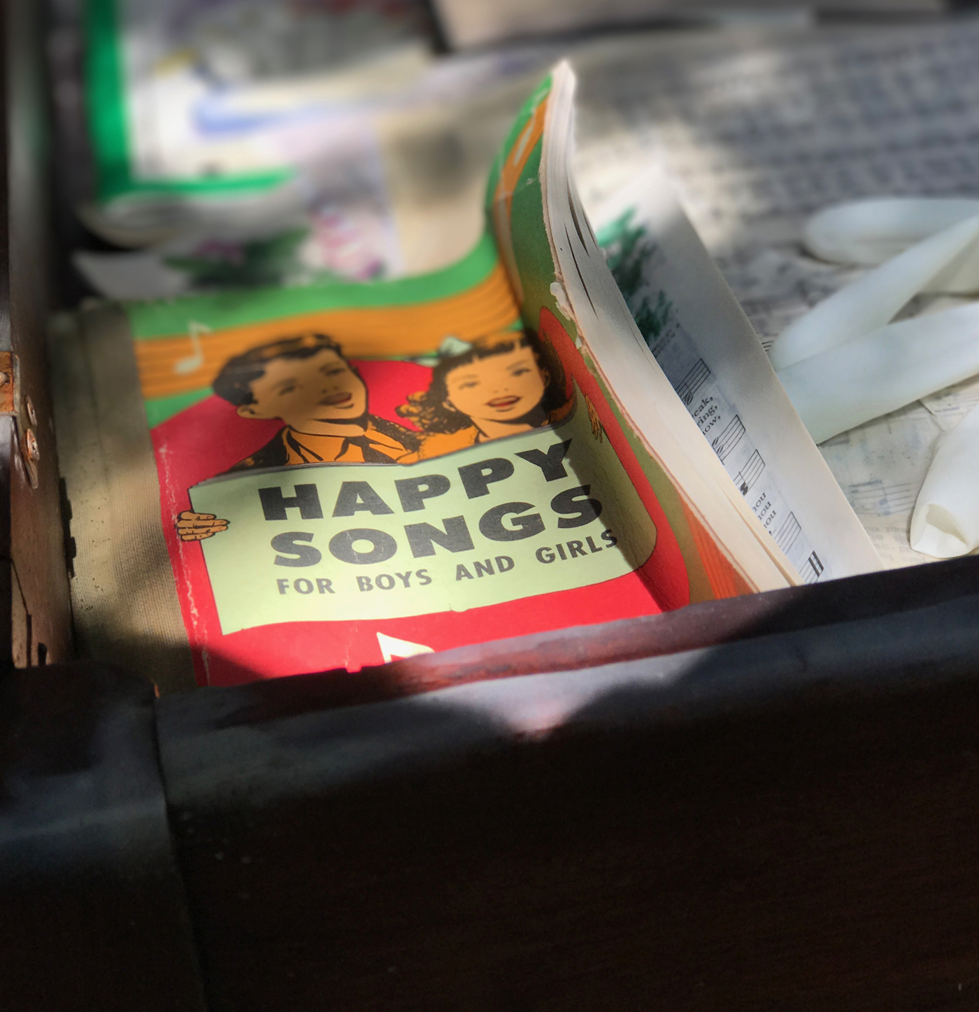 - In the piano bench, an old songbook for happier days.