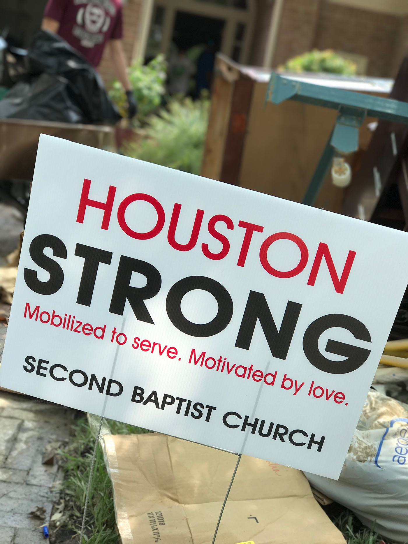 In our neighborhood, crews from Second Baptist were everywhere– and it’s people like this make a huge difference. The homeowners are in shock. It’s difficult to make decisions. They need people right now who can come in and do the heavy lifting.